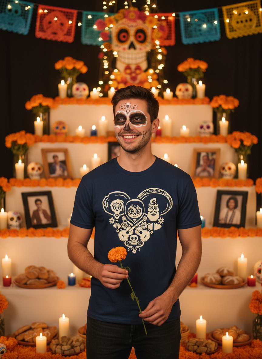Playera Coco Hombre Mujer Azul Marino Disney Pixar Original Ernesto, Miguel y Héctor