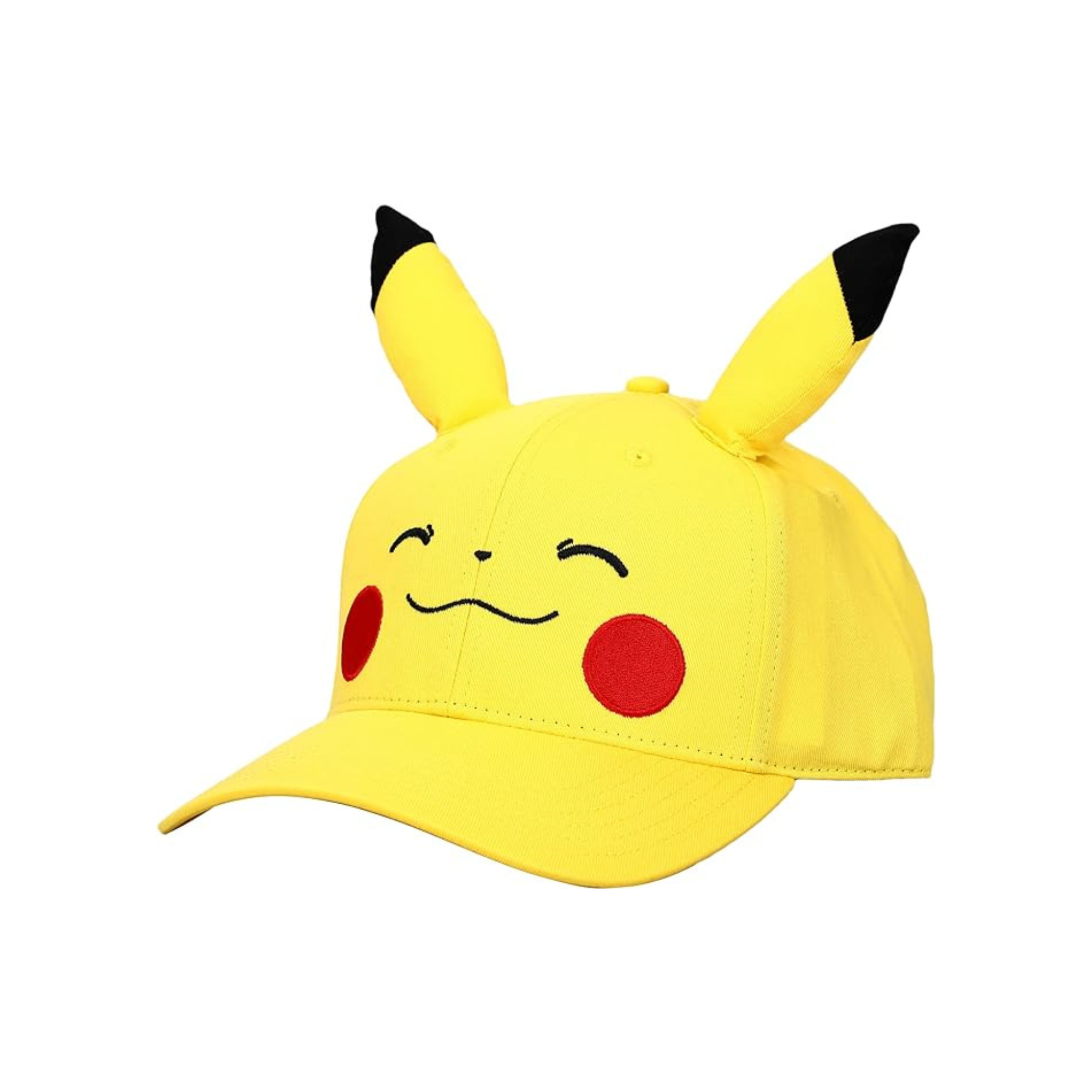 Bioworld Gorra Snapback Pokémon Pikachu con Orejas 3D - Diseño de Cara Sonriente, Producto Oficial, Unisex