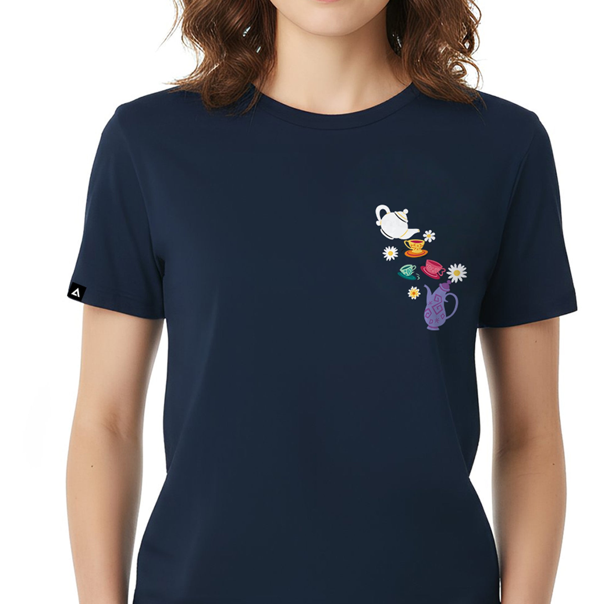 Playera Alicia en el país de las Maravillas Hombre Mujer Azul Marino Clásicos Disney Original Fiesta del té